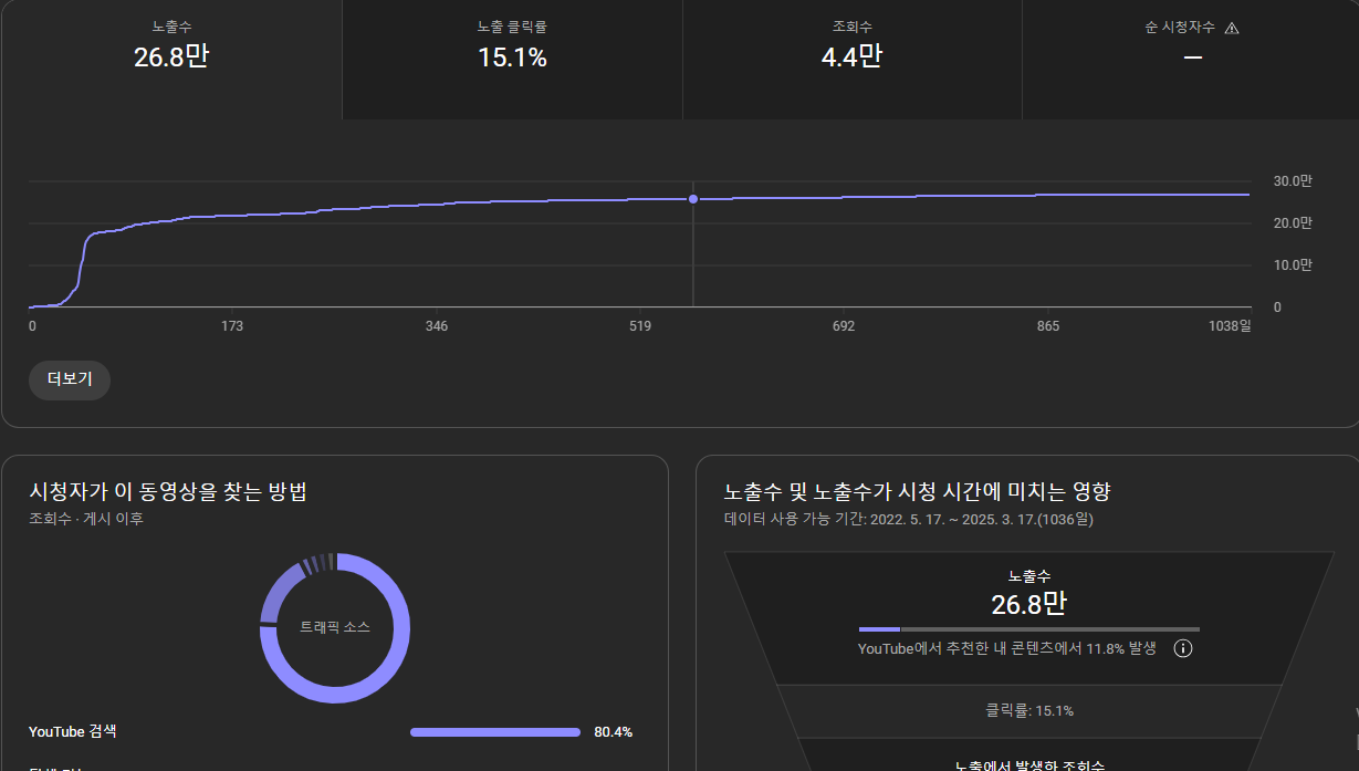- 클릭률(CTR, Click-Through Rate): 썸네일과 제목을 보고 시청자가 영상을 클릭하는 비율입니다. 클릭률이 높으면 유튜브는 해당 영상을 더욱 많은 사용자에게 추천합니다.